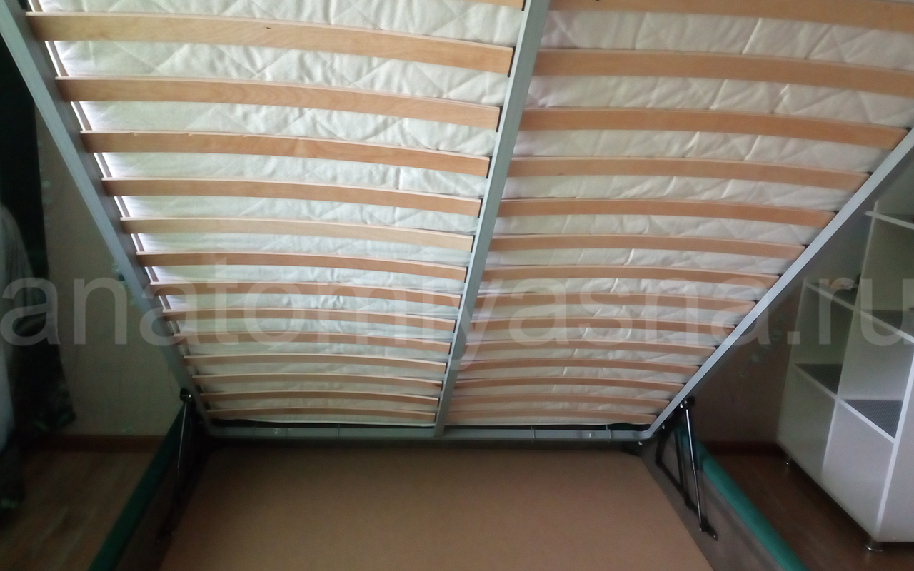 Большой отсек под кроватью, удобно поднимать и опускать.